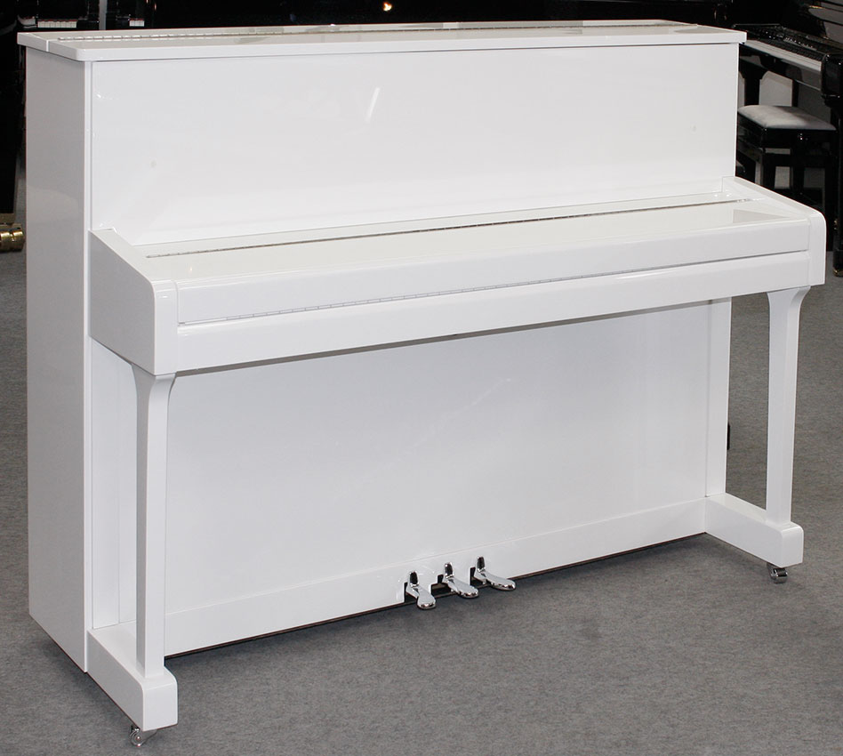 Klavier Weinberg U 110 T weiß poliert / Chrombeschläge